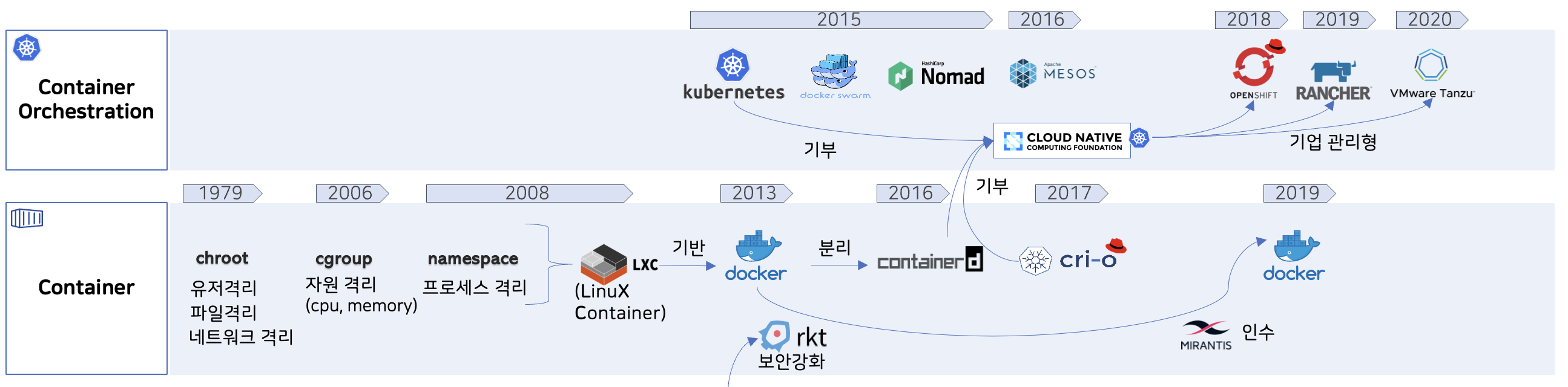리눅스는 지금까지 꾸준히 발전해 왔고, 내부적으로도 많은 코어 기술들이 개발이 되었으며, 핵심 코어 기술중 하나가 격리 기술이다.