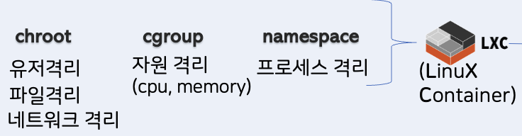 - chroot : 사용자 격리를 시작으로 파일이나 네트워크를 분리하는 기술